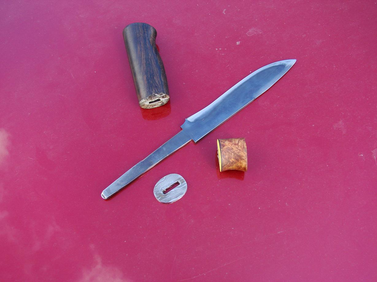 А,чуть не забыл насчет насечек.....при нормальной эпоксидке и такой длине хвостовика насечки не нужны.Они могут только ослабить хвостовик.Даже при бракованой эпоксидке Деду пришлось стучать деревяхой чтобы снять.И думаю клинок при этом в тисках был изначально (Хотя конечно рукоять так не должна сниматься и это непорядок))