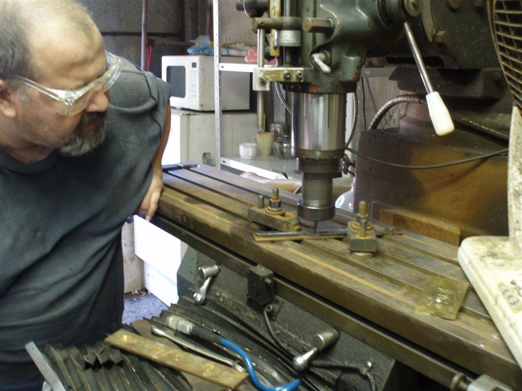 Неспешно проходим первый круг .Вижу все необходимое -горн ,печки для закалки разных размеров , духовка для отпуска ,пневмомолот ,фрезерный и токарный станки, ленточный гриндер собственного изготовления (Руди делает их и на заказ ) , вальцы и другие столь необходимые мастеру предметы .