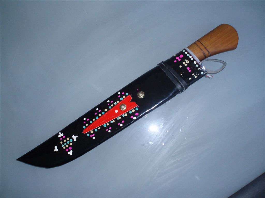 У меня с советских времен есть небольшой пчак . Так , все - таки , кожа и вышивка на ножнах