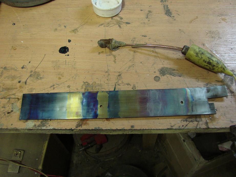 По мере подьема напряжения прямо на глазах начинается изменение цвета детали от золотистого , через коричневый , фиолетовый к голубому .
