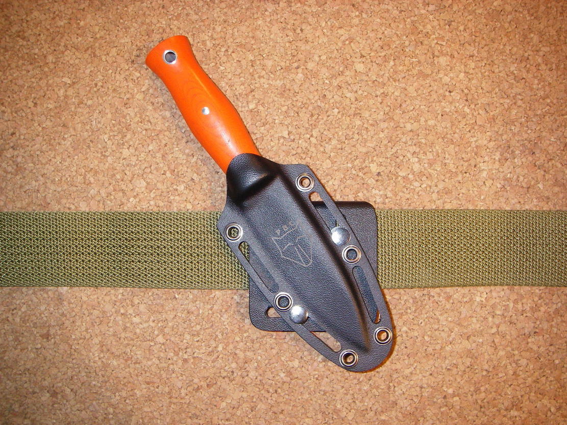 " ...Удобные ножны из Kydex позволяют с помощью винта регулировать усилие прилагаемое для извлечения ножа и имеют дренажное отверстие. Нож сидит в ножнах довольно плотно, при потряхивании стука нет, и без ощутимых продольных и поперечных люфтов, которые впрочем с легкостью можно убрать этим же регулировочным винтом.."