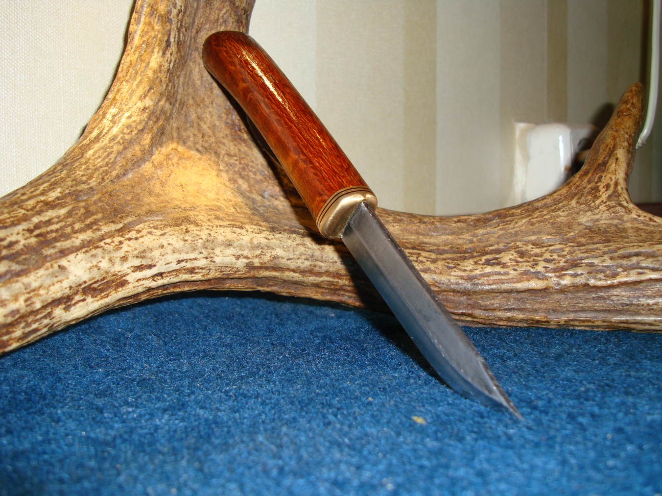 Спасибо. До практики очень мало и времени. Но буду стараться. А что касается формы мне тоже не нравиться но повторюсь это тренировка на нормальной деревяхе. Латунь с проставками опять же... А что касается удобства в руке то с этим все нормально. Да и как нож для всякого ( деревяшку построгать, банку открыть) подойдет.