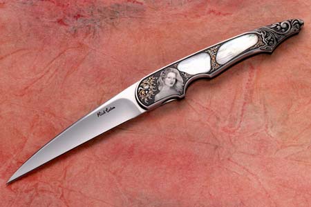 Найфмейкер из США Rick Eaton начал серьезно делать ножи в 1982 г. а в 1983 г. увлекся гравировкой. В 1993 г. , оставив работу в качестве оперативного инженера, стал заниматься ножами профессионально. Он делает все виды ножей, предпочитая уникальные изделия. Любимые темы - фолдеры и кинжалы. Использует стали 440С, 154СМ, АТС-34 и дамаск.