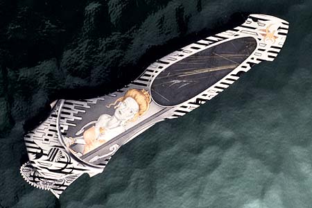 На рукояти использует древесину экзотических пород, перламутр, жемчуг, слоновую кость, рога, коралл и камни.