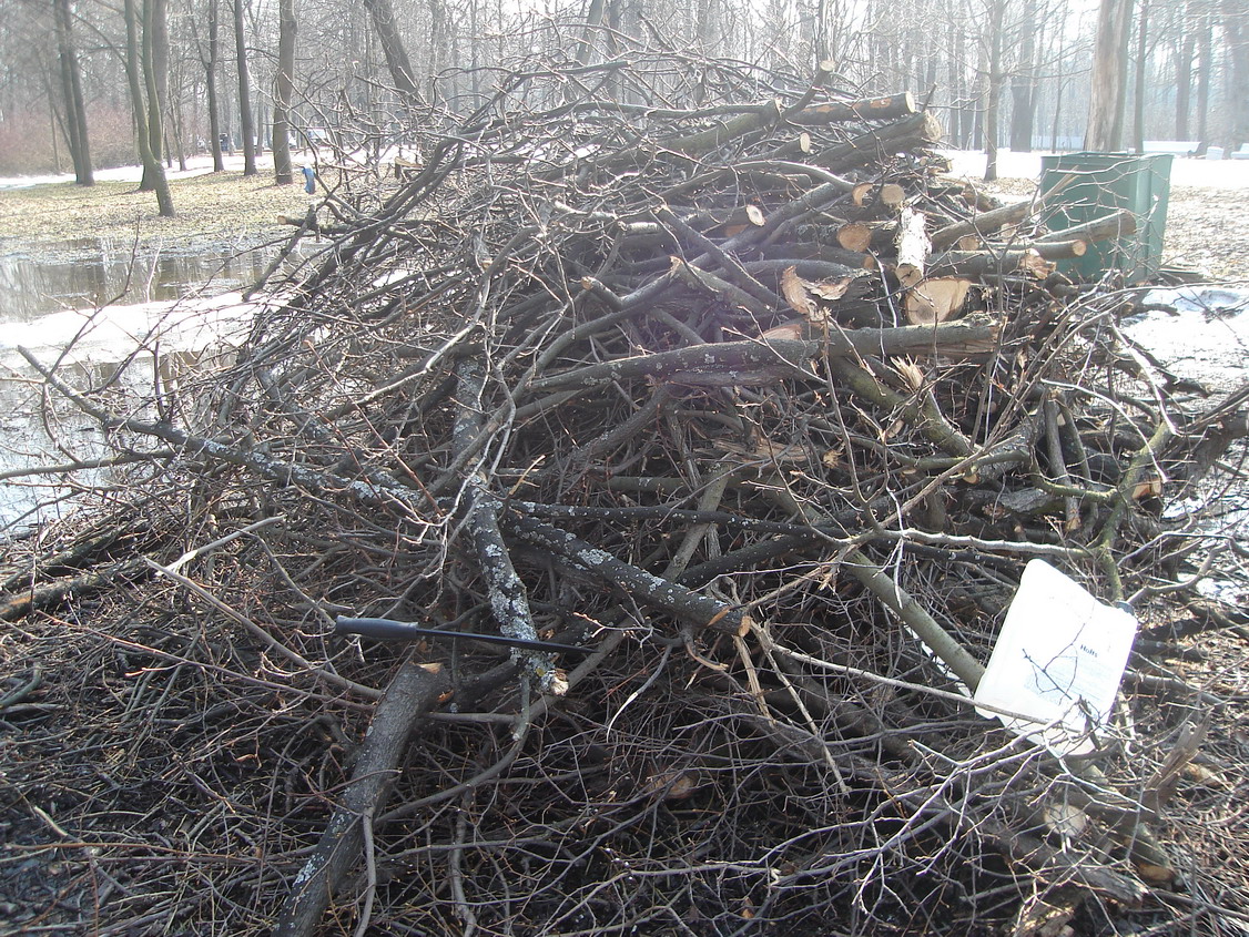 Дошли до парка и я сразу же увидел кучу веток, сложенных в удобном месте.