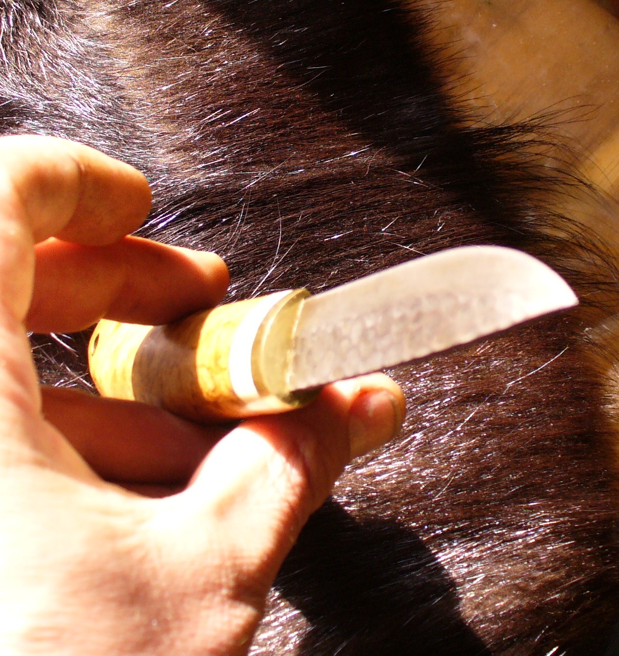 Вот в принципе вполне рабочий нож,но.... На мою имху выбивается из общего строя остренькая подпальцевая грань ,особенно у больстера .Может чутка закруглить ?