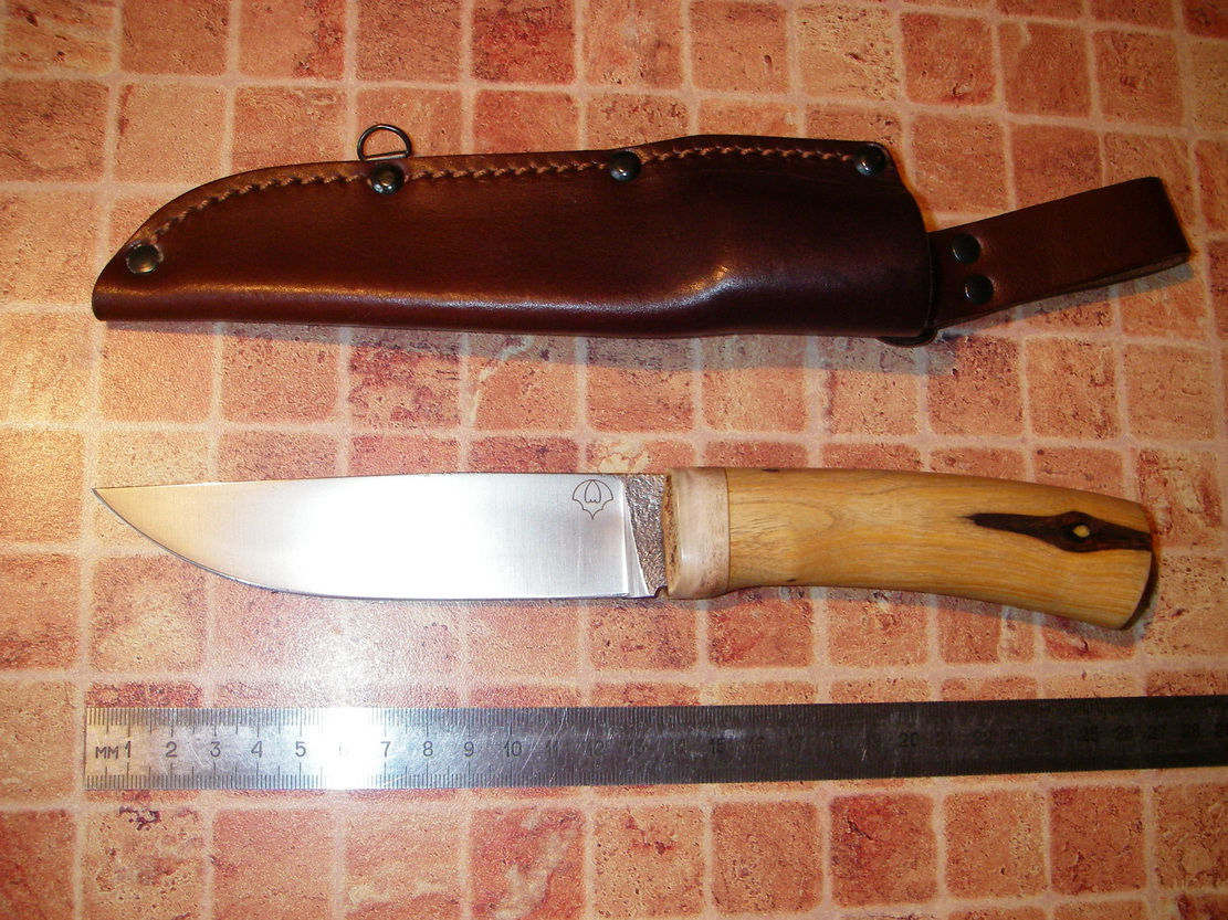 Наши друзья показали нам нож,который старательно юзался на охоте. Это наш серийный Егерь,только на ручке насечка лазером сделана. 95я показала себя как нормальная работяга.