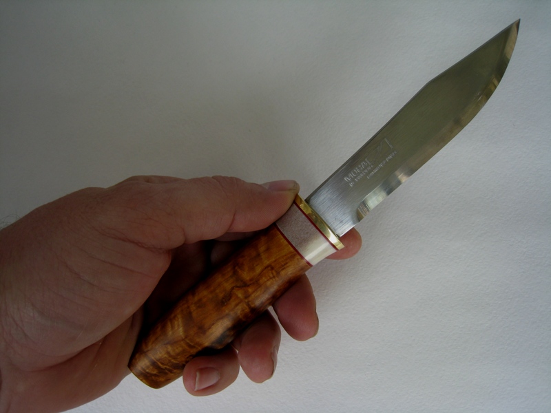 пользую финку с моровским ламинатом,обкладки ржавеют махом,царапаются об воздух,центральный слой сухой,хрупкий,точится легко в зверскую бритву,поэтому в женские руки желательно не отдавать - смерть маникюру.В общем хороший :mrgreen: