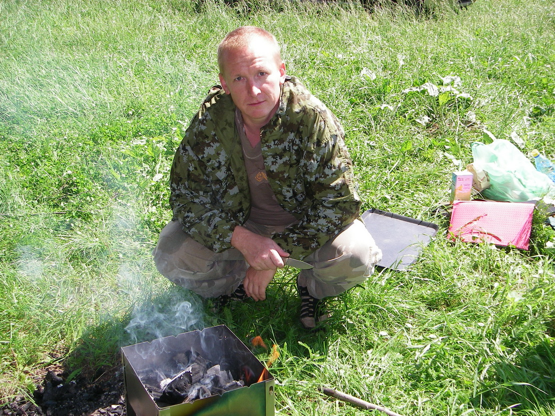 В выходные с женой и сыном съездили на пикничок. Как всегда набор из солнца,свежего воздуха и мяса доставил всем несколько часов удовольствия :). Резали только Малышом-М,хватило вполне. Мясо конечно в один проход нож не брал,но результат не изменился. Порезал. Все были сыты и довольны :) Раньше была мысль ещё укоротить лезвие,но сейчас передумал. Короче 80мм это уже маловато,а так в самый раз.