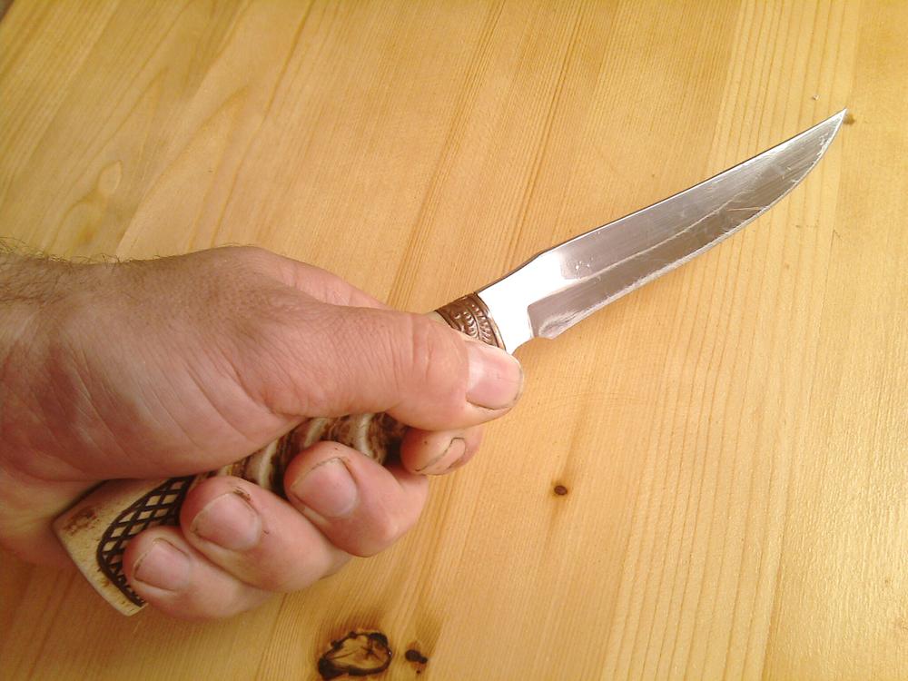 Как я и предполагал, ножи с непривычной геометрией внешнего вида вызывают интерес .У всех.Это конечно не повод ляпать всё что заблагорассудится ,но новизна в линиях должна присутствовать всегда и повсеместно.Чем я и намерен заняться ближайшем будущем.А пока в качестве разгрузки покажу страшилку 6-ти летней давности.65-я нерж с сосновой рукоятью.Была попытка поморить полачить ,но со временем в раковине на кухне (где он живёт постоянно) всё отстало.
