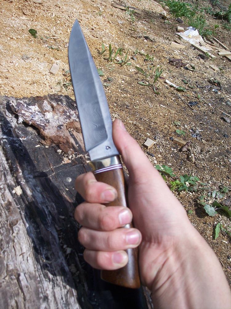 Хороший нож. Северного типа, только обушок не прямой до острия, а со скосом - смотрится необычно и харизмы ножу добавляет. И высокие спуски в тему - не до обуха, но выше половины... Все отлично.