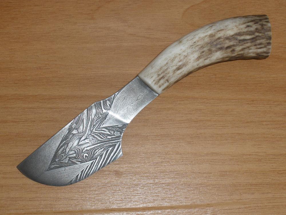 Привет сопалатникам ! Выложу недавнюю поделку .Кусочек-обломок дамасска от Мастерской Федотова и кусочек рога от братьев - оленеводов с Севера.Пуговку с инициалом тайно ночью срезал с пальто жены (она ещё не в курсе),до зимы долго,придумаю чё нить в отмазку.Размер ножа 145 общ. и 75*29*4 клинка.Про обломок железки был разговор в соседней теме (если кому интересно) viewtopic.php?f=6&t=8152&start=30