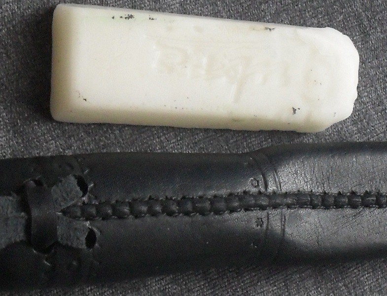 Переделал толстяка - подносился и ножны вытерлись... Ножны пропитал под очень горячим феном каким-то парафином -продаётся в магазине для сапожников (твердый и тугоплавкий, для затирки торцов, что-ли...есть на фото, 15 рублей брусочек) . Посмотрю, как он себя покажет.