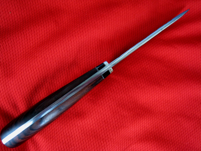 Да, есть еще порох в пороховницах... Это не из последних запасов, скорее, просто был недоволен ножом - вот и поставил вне очереди :wink: . Притины были слишком длинными, с вулканической фиброй перебор, да и травленая паяльной кислотой береза, конечно, с кингвудом ну просто ни в какое сравнение! Нож потяжелел в два раза, при том, что выглядит изящнее. В районе навершия стал потолще - комфортнее тактильно. :D