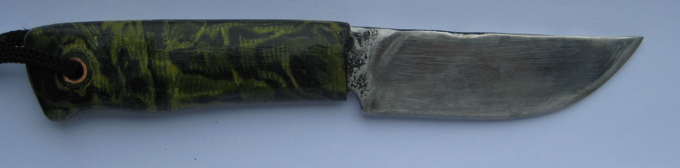 Слегка послесарил, рукоять типа текстолит (эпокси и тонкая синтетическая лента(двух цветов) намотанная на хвостовик).