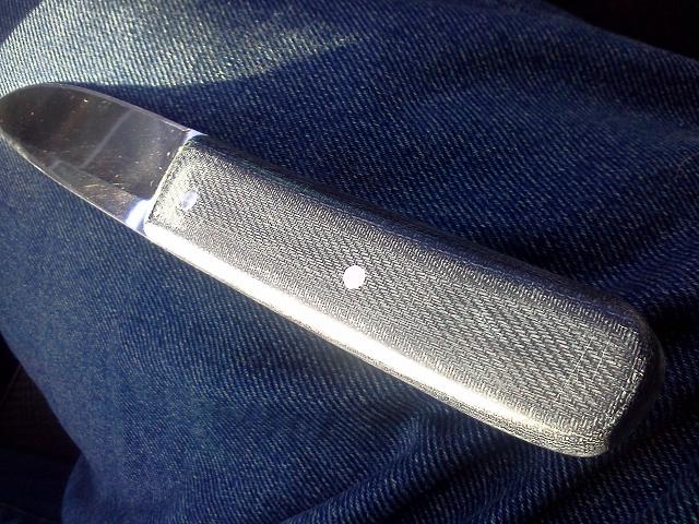 А мне стесняться нечего я не далаю ножей экстра класса (это тоже не под...б а комплимент). Это первая работа такого рода (с микартой). Так пусть народ скажет свое мнение в мастерской нормальный ребята есть подскажут что к чему. А потом фото все равное не передает того как на самом деле нож выглядит и самое главное как в руке лежит. Так что не стыдно ни разу.