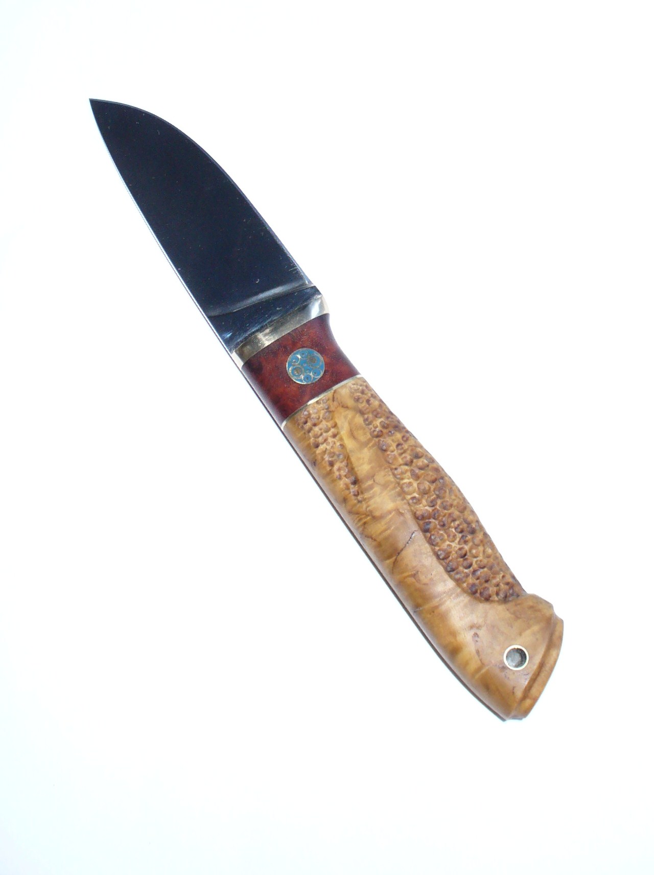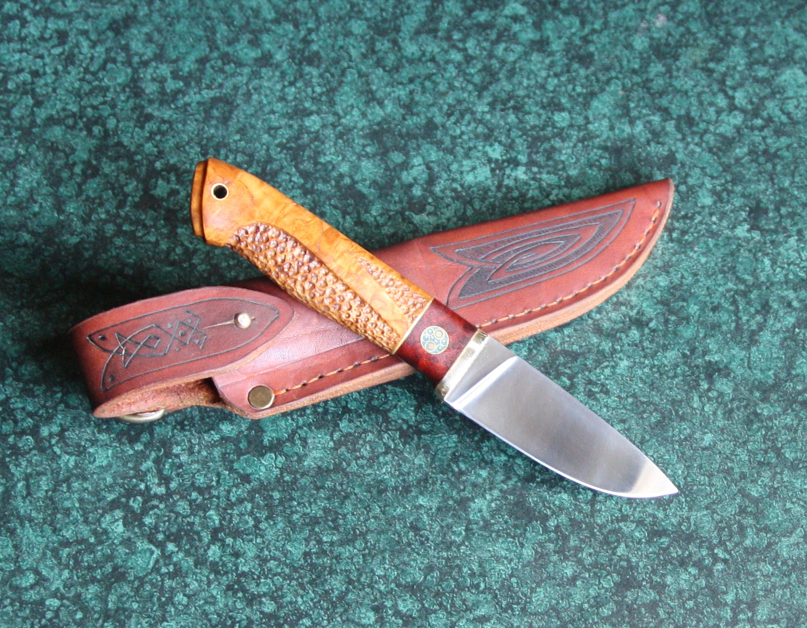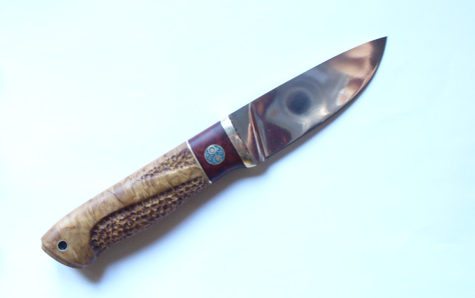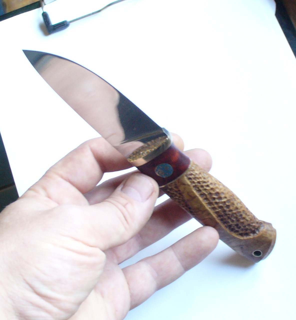 К рельефности рукоятей отношусь почти всегда положительно. Но на данном изделии пожалуй из-за фирменной фишки Александра не полность раскрыт рисунок карелки. ИМХО. В целом нож понравился.