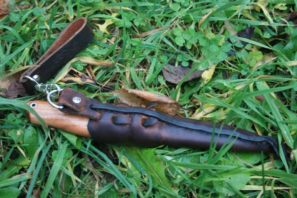 Итак:длина 220- см,длина рукояти 12,5 см.Клинок МОРА-углеродка.Больстер-гетинакс,дюраль(понимаю негодование публики,но хотелось узнать ,чем так плох этот металл),белый пластик(корпус от стир.машины МАЛЮТКА),рукоять маккоре(интересная деревяха абсолютно не берет масло для полка,отлично шлифуется,но есть большой минус очень пыльное и едкая пыль,последняя нождачка была 2500 грит),алюминиевая трубочка под темляк.Пятикратное покрытие Тик-Ойл.Ножны(временный вариант –похоже будут совершенствоваться) со съемным подвесом(жесткий вкладыш-эпокса армированная бинтом-вентиляционно-дренажные отверстия присутствуют),седельно-шорная кожа,пропитана воском.