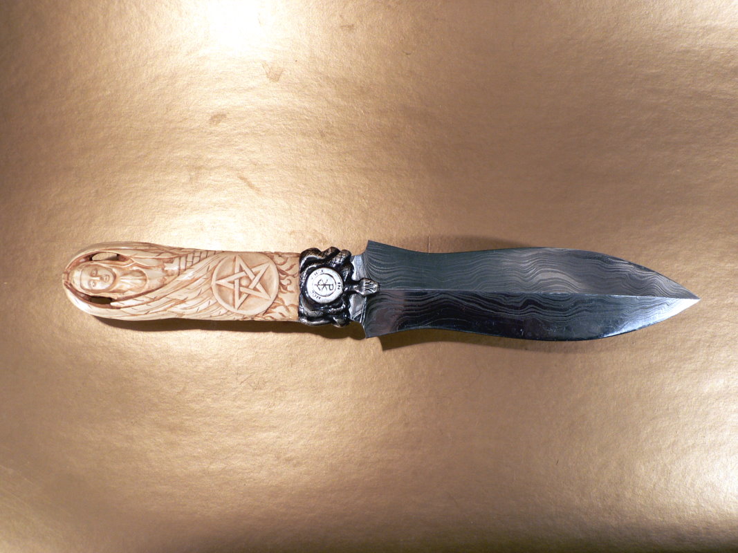 Я всего лишь выскажусь про цвет рукояти (остальное нравится). К общей стилистике более глубокий цвет кости нужен, почти коричневый или даже чёрный. Незнаю как это делается, но надеюсь без рисунка моя мысль понятна...