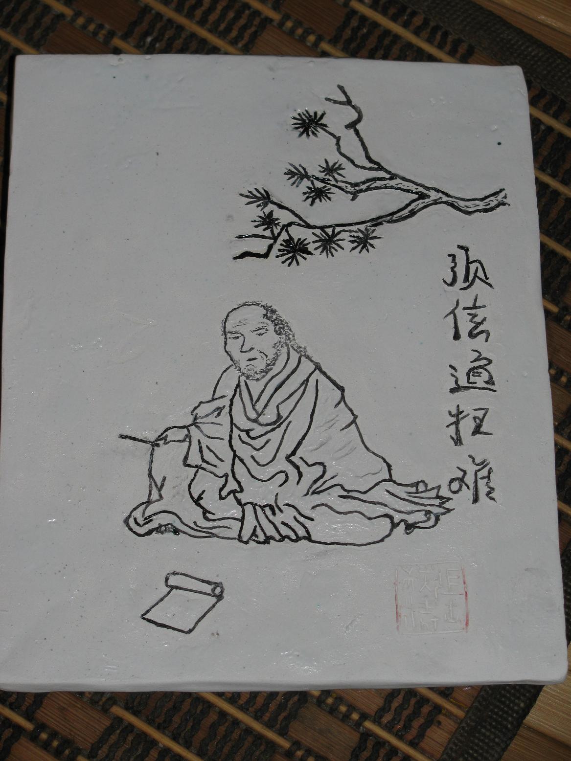Вот дядька-то и есть первый блин. Только исправить его уже не получится, потому как обожжен (фаянс), но то, что перерисую - это точно. Теперь уже технология отработана, только людей всеже тяжелее, на мой взгляд, рисовать, чем животных, вот и японец мой, как и не японец вовсе получился