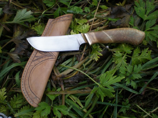 Нет, ручей не Муринский. С юго-западу я. Выбор кожи для ножен обусловлен наличием в закромах именно такой кожи (цвет, толщина, мягкость.. :D ) Для ножен не очень подходит.