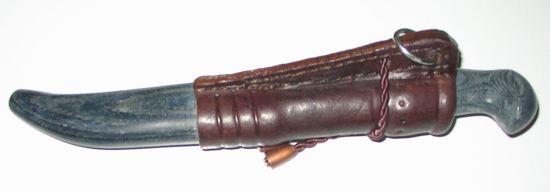 Смастерил ножны. Всё тяга к новому виновата. )) Кожа конечно не саамская. Делал из той какая была. Шовчик "уха" получился кривовато малость...