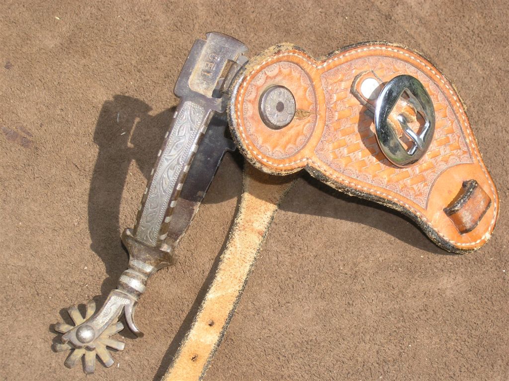 Пока мы беседовали , подъехал крутой джип .Клиен привез в ремонт японскую катану ( треснули ножны ) и американские шпоры , сделать копию . Одну шпору я утащил и сфотал для вас .