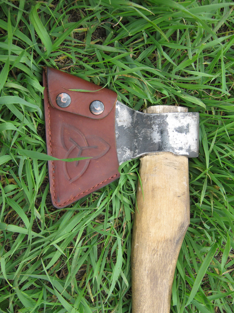 А я себе на топор, вот такой чехольчег соорудил. Топор в машине живет, поэтому в подвесе нужды пока нет.