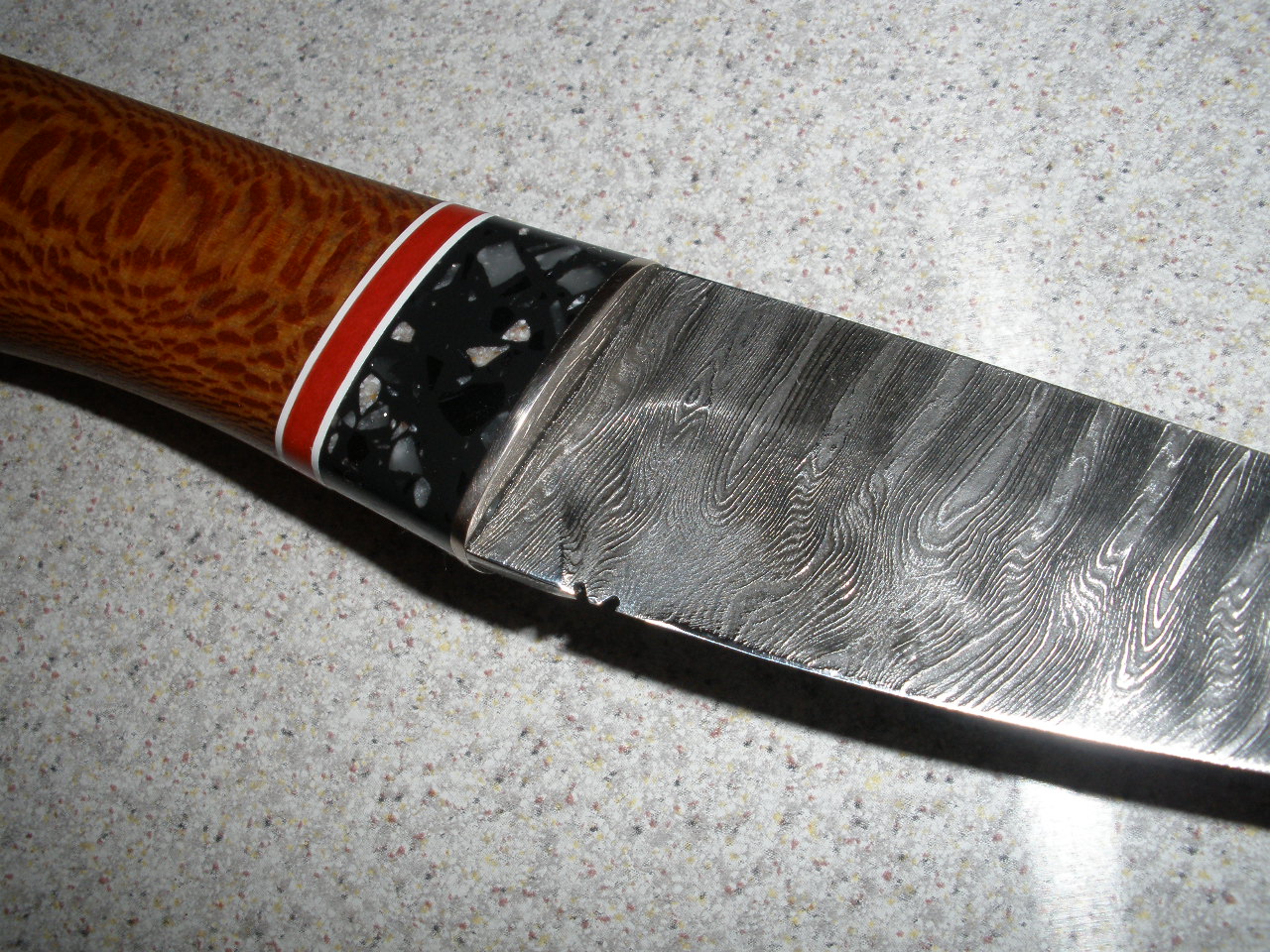 Клинки Федотова?Дамаск ржавеющий,для кухни.....На верхнем слишком задрана рукоять что практически сводит на "Нет" загиб РК.