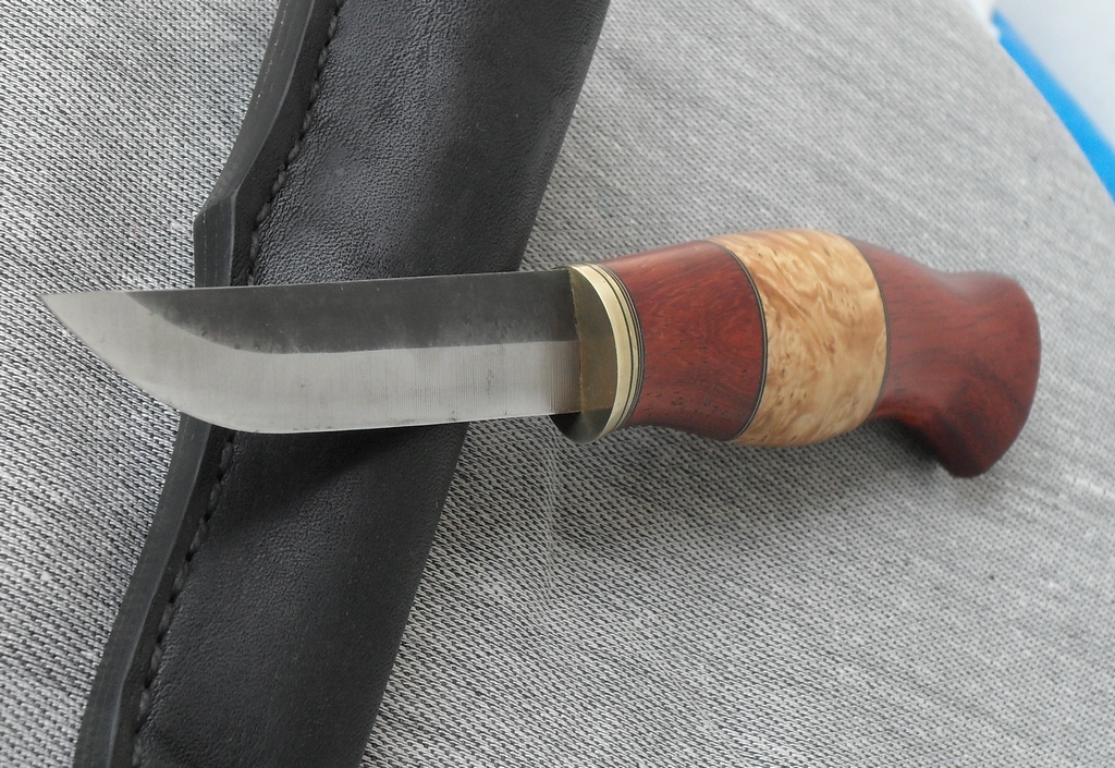 Что понравилось. вид сверху, подбор цвета матерьлов, чистая и аккуратная сборка, торец ножен аккуратненький, шовчик ровненький.