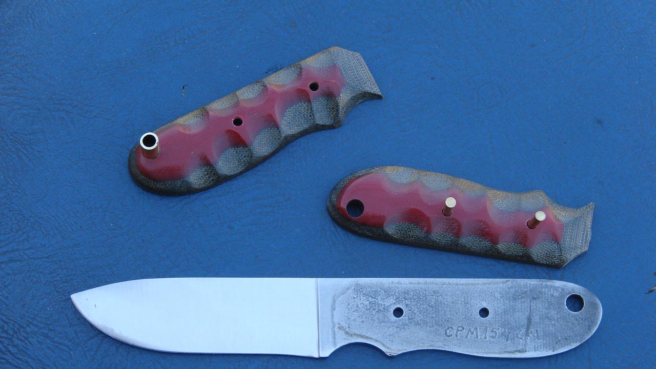 Клей был,на этом расслоений не было,на прдыдущем красная микарта отставала.Микарта на основе стекловолокна,судя по сгаранию связуешего без остатка,пропитана крашенной полиэфиркой не все клеи с ней хорошо связываются.В случае с крайним ножом клей очень хорошо держится на металле и никак на микарте.