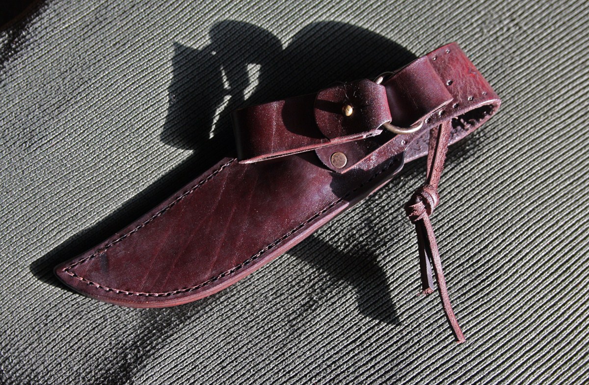 3. С орнаментацией ножен, на мой взгляд, опять перебор. Хватило бы узкого тиснения по периметру, а по центру ножен повторить бы плетенку, как на руковке.