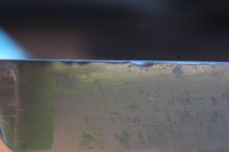 Рез мороженого мяса отпал за неимением такового. Строгание гвоздя банально забыли. Рубка мороженых веток отпала в связи с климатическими препонами (на улице было 26 градусов в тени). Мойка в посудомоечной машине перестала быть мне интересной, т.к. поведение микарты в ней я уже знаю – вымывается верхний слой эпоксидки, рукоять становится слегка шершавой. Но это после множества моек.