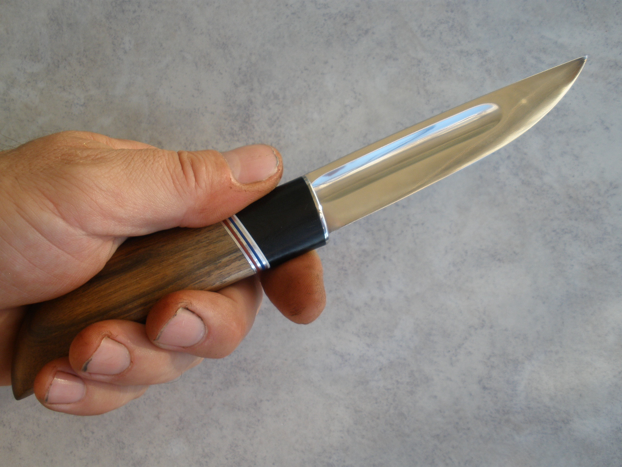 Приветствую камрадов. Решился показать вам парочку ножей недавносделанных.Различия в них есть ,но главное что меня удивило - оба ножа удобны в руке.Даже не ожидал такого.Сделал сначала кухонник,показываю жене ,она говорит ,вроде нормально ,но если перевернуть рукоять наоборот,то лучше в руке.Ну, спорить не стал,сделал маленького якута ,но с учётом пожелания,и как оказалось оба ножа были с радостью приняты хозяйкой кухни.Размеры здесь не самое важное .Если вдруг кому-то станет сильно интересно -расскажу.Вот такая story.А теперь масса фот.