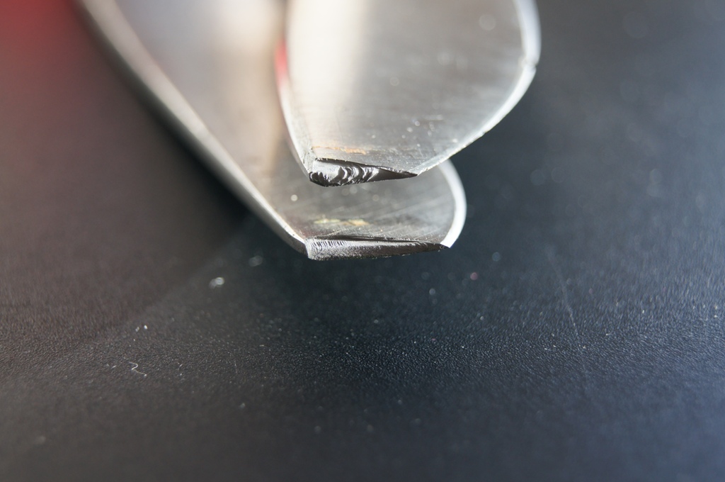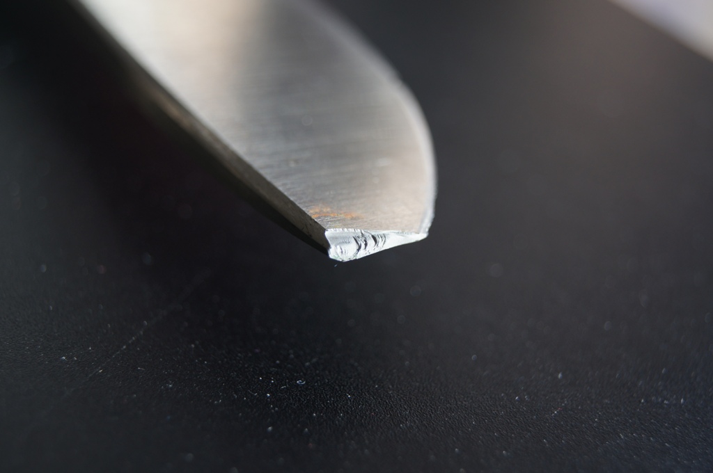 5.3 По правке - изначально на ноже была линза, которую, похоже переточили... На Ди-90 это не самое легкое дело. На тестах у В. Кузнецова, нож после 700 резов был приведен в состояние "бреет со свистом" примерно за 40-50 движений по керамике УЛЬТРАФАЙН.