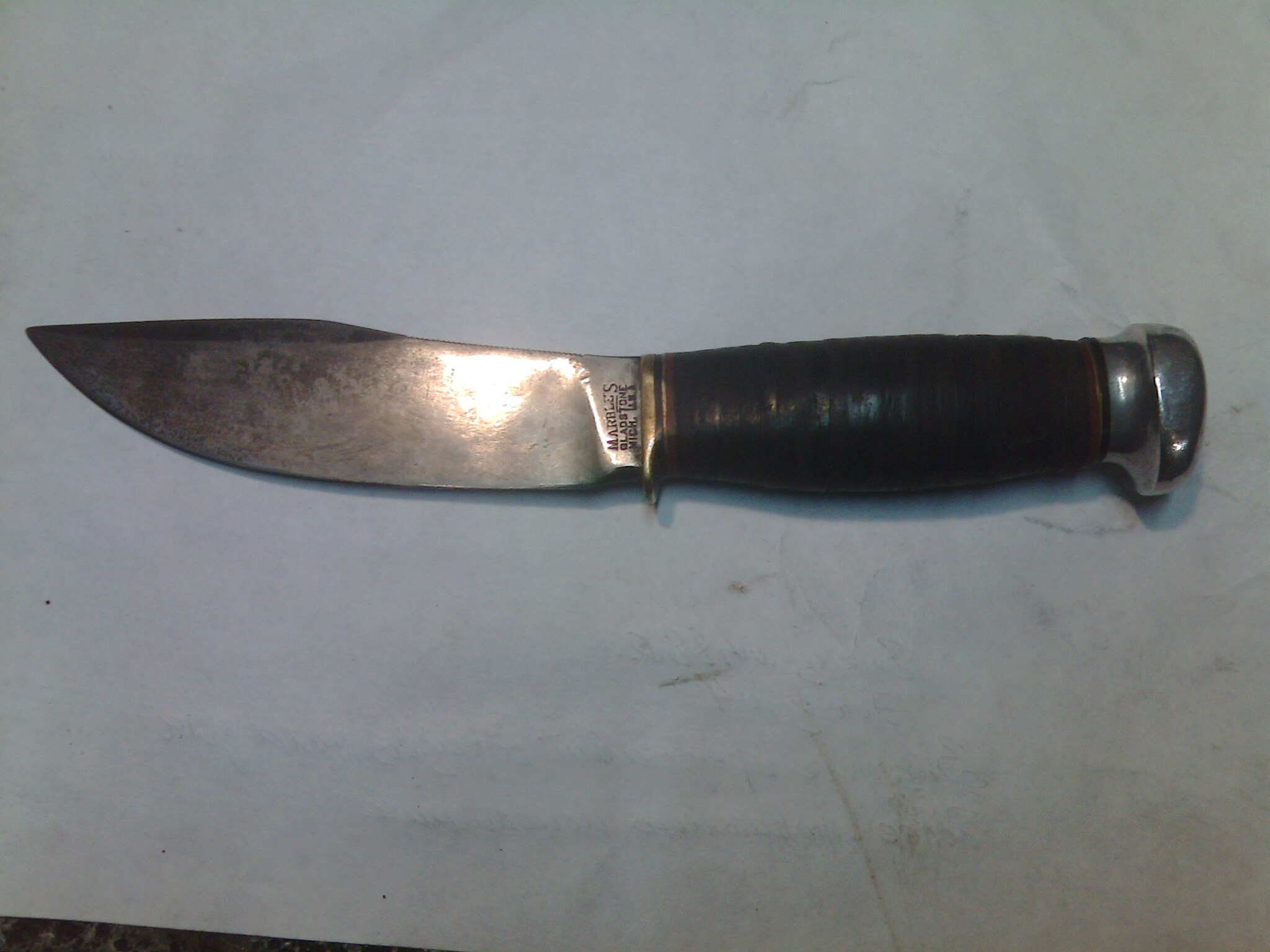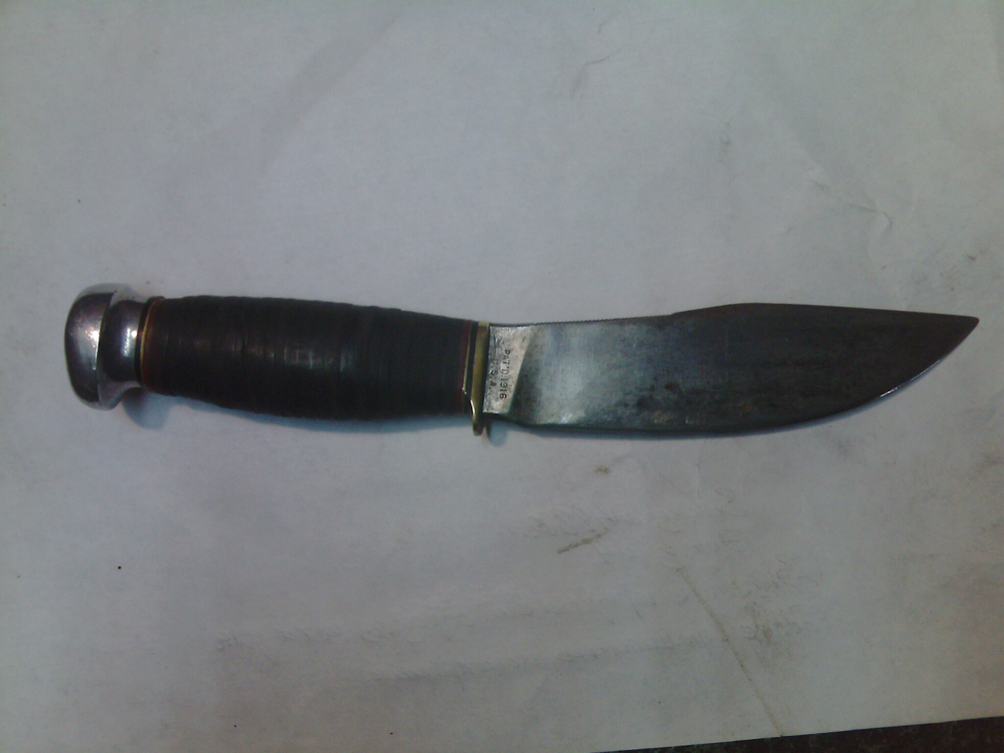 Приветствую мастеровых . Как-то довелось мне помацать такой вот нож .Старый ,но в хорошем ,я б так выразился ,состоянии .Сделал несколько фот . Вроде как фирма знатная. Но что мне показалось достаточно странным - маленькая неудобная рукоять . И вот думаю ,а стоит ли повторять сей размер на своём новоделе ? Померить конечно не удалось раритет,но ладонь не помещается на рукояти.