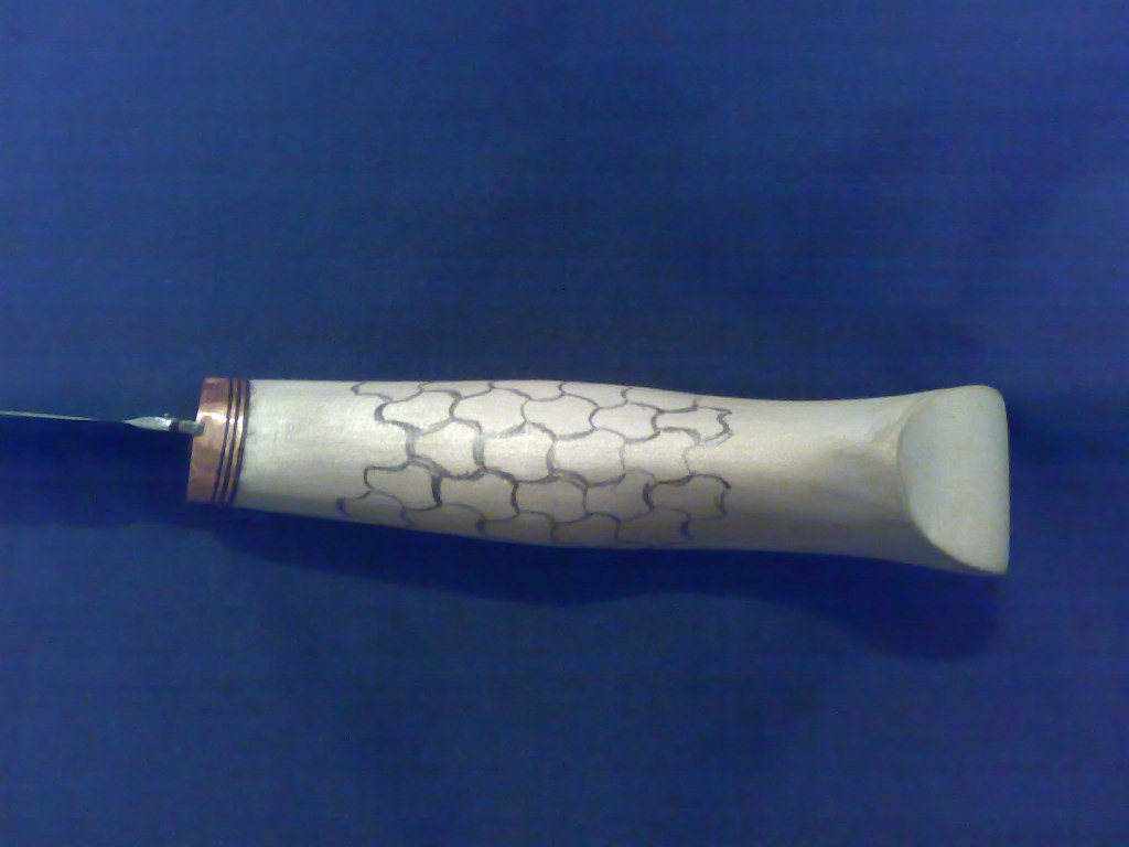Саша, насчёт замыленности.....ты начинаешь шлифовать и появляются грани на резьбе, в твоём случае нужно размывать, коцентрирую цветопередачу в углублениях,но что бы переходы были плавные.....начёт незавершённости, можешь попробывать продолжить резьбу до окончания рукояти предварительно отбив канилюрчиками момент завершения, и подгоняя элементы плетения к завершающему этапу, они должны заканчиваться не рвано, а как то по другому, сам придумывай, но центральная резьба должна быть одинаковой,........ блин, ты же резчик, чего я тебе объясняю прописные истины, предстаь что это твоё пано, только не в плоскости а в объёме, вопщем трудись.....потом проверю. :lol: