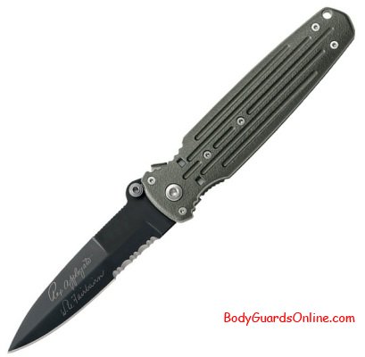 Первоначально нож был рассчитан на заточку обуха, делающую его клинок кинжалоподобным, но из-за разногласий с законодательством некоторых штатов в серию нож пошел с незаточенным обухом. В целом нож очень неплох, но все-таки по некоторым параметрам уступает нескладному прародителю A-F – у него более короткий клинок , нет гарды и двухсторонней заточки. Хотя компактность и удобство ношения в городских условиях, возможно, для многих пользователей окажется решающим фактором при выборе именно этой модели.