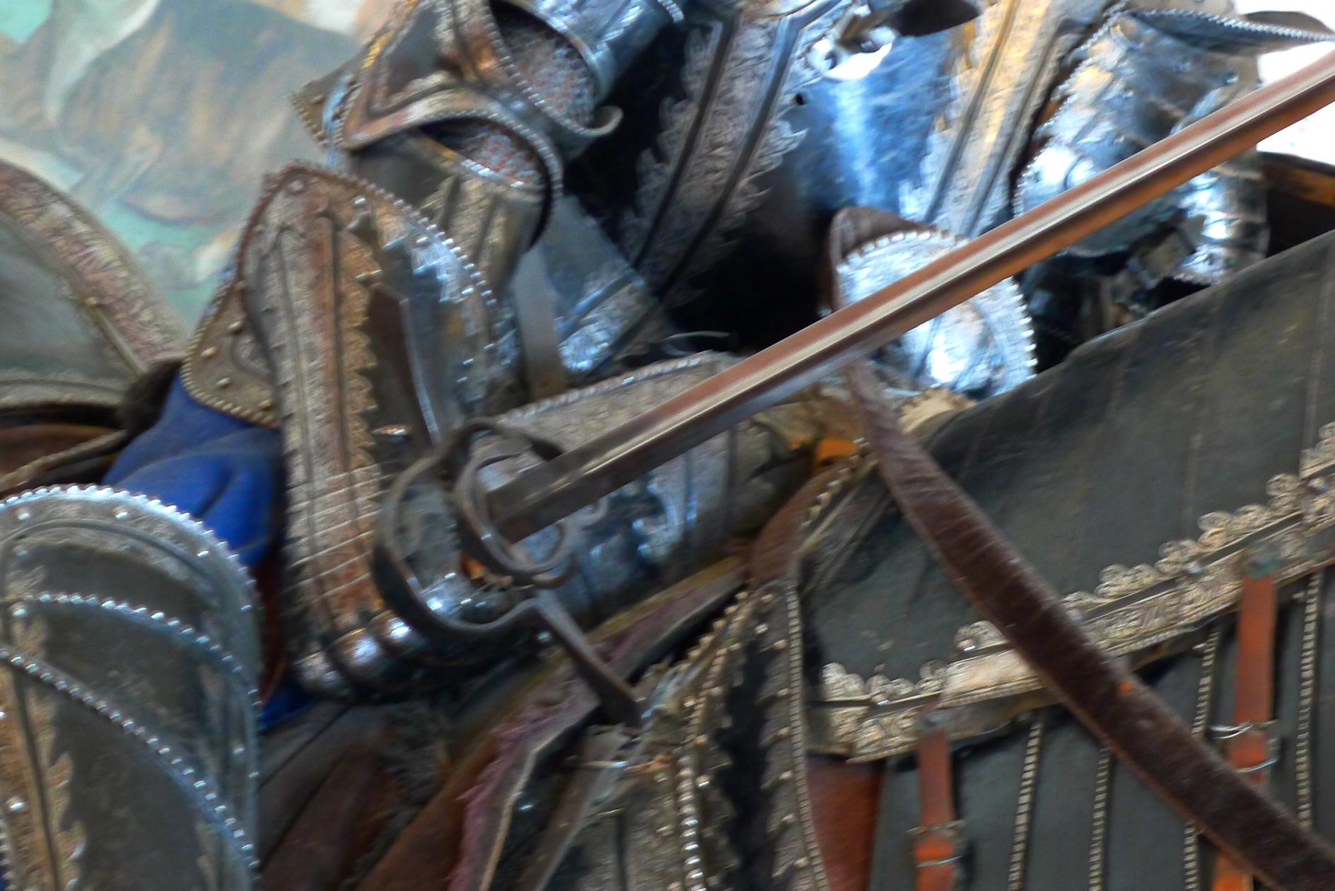 1) Зачем на фото P1040102.JPG с рыцарскими доспехами, такие когти на сапогах?