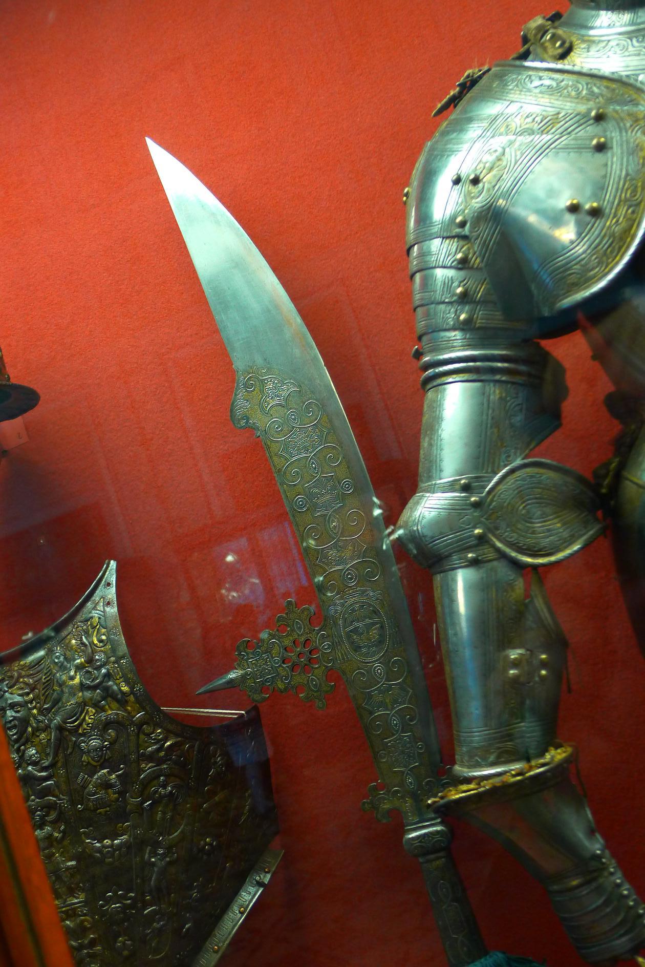 Как обычно фотки не лучшего качества, но я старался как мог и сфотографировал всё что относится к холодному оружию в этой экспозиции, ну и плюс детально увеличенные фото, позволят рассмотреть искусство оружейников средневековой Европы :) ...и хотя против витринных бликов с кучей люстр не попрёшь, неискушённый человек сможет всё рассмотреть и погрузиться в мир прекрасного.