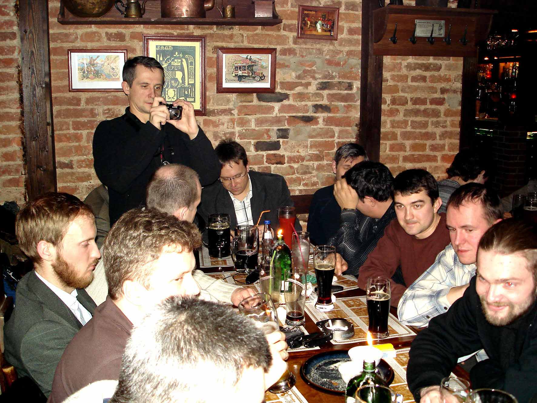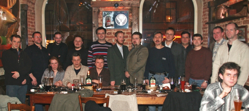 Стоят (слева направо): Роман, Alexei, AptRos, Ingwar, Артем, Silver, AlexSpb, Алексей, Иван, Михалыч, Анатолий, Яркий Ник и Beermantas
