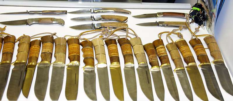 Основной ножевой ассортимент на втором этаже. Сразу на выходе с эскалатора фирма "Павловский нож".