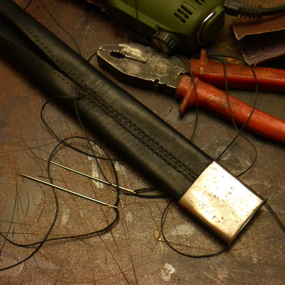 Сшиты новые ножны, почищена фурнитура, убраны ямы на клинке (видимо кто то круглой насадкой вычищал ржу)