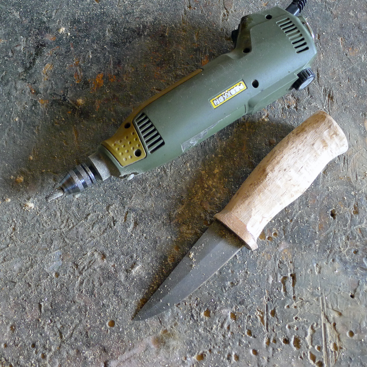 один планирую из напильника и чисто дерево, а другой - 95х18 и дерево с рогом лося.