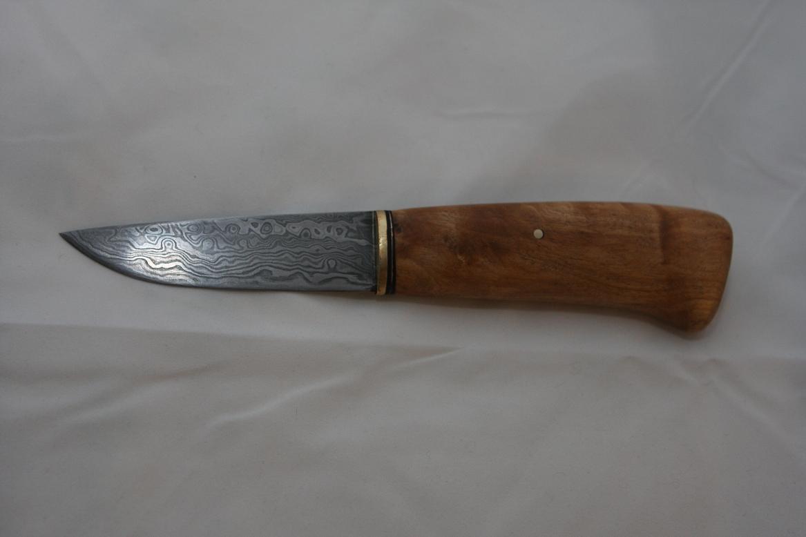 По мне так "простенький" красивее, гармоничнее что-ли. Как-то не очень нравятся сделанные с некоей вычурностью ножи. То, что при работе нож удобен не сомневаюсь(самому такие нравятся), пропорции и формы лезвя и рукояти продуманы и соответствуют друг другу.