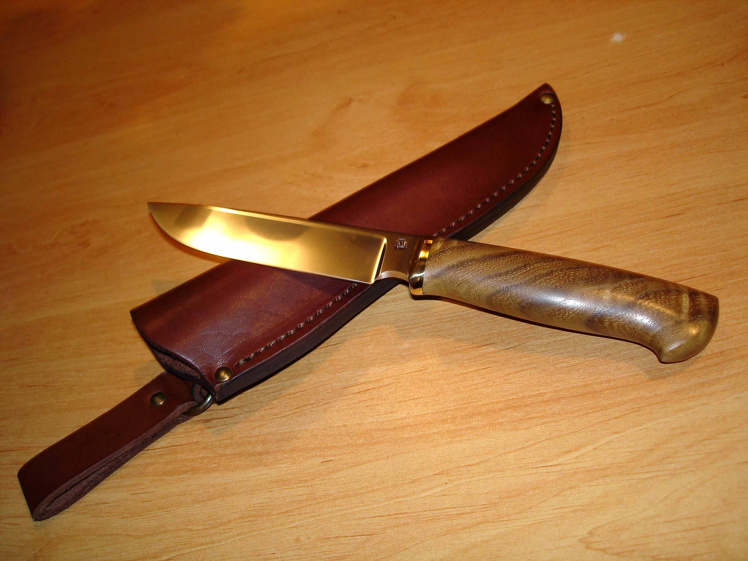 Рукоять из акации. Я ее и просил, когда нож заказывал. В принципе, не кап, ничего такого, - но смотрится очень неплохо. Мне кажется, что пропитка сделана, скорее всего, маслом для полка и сверху заполирована карнаубой. Но это - чисто внешнее впечатление.