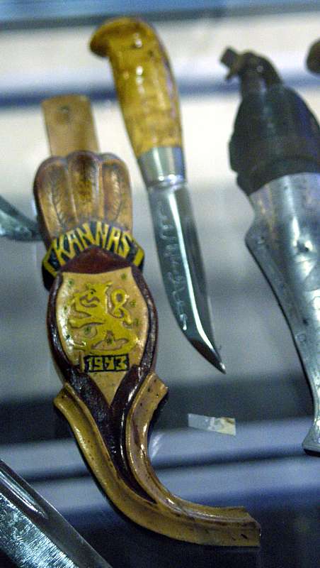 А что за экспонат с каким-то егерем на ножнах? Блин, у меня заганпаспорт кончился... Экая досада.