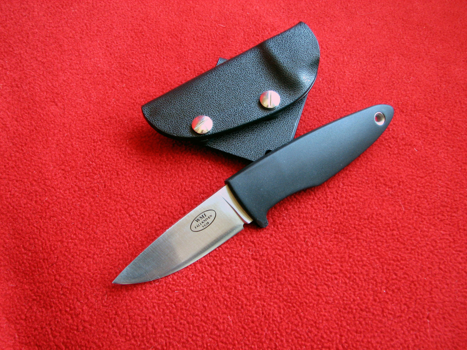 Собственно, подарили мне тут на д.р. немножко денег, и, естественно, деньги эти сразу стали нестерпимо жечь карман – короче, ноги сами понесли меня в ножевой магазин :) В последнее время меня обуяло желание попробовать потаскать в городе небольшой фиксед, а то складники что-то поднадоели. Сказано – сделано. Выбор мой пал на мелкий Фалльк, бо понравился чисто визуально, да еще и в руку лег зело приятно. Сам производитель почему-то позиционирует эту модель как женскую, но здесь я бы поспорил. Безусловно, ножик прекрасно подошел бы для девушки, однако даже граждане с весьма крупными ладонями отзываются о его рукоятке как об очень удобной и ухватистой. Ну, что сказать о ноже? Прежде всего – он красив в своей простоте: ни грамма внешней броскости, ничего лишнего, чистые линии, какая-то типично скандинавская основательность и практичность. В общем, производит впечатление добротного рабочего инструмента, и при этом на диво элегантен. Клинок имеет длину всего 70 мм, но зато в обухе у него целых 3,5 мм – этакий микроломик :) Чувствуется, что WM1, как и все ножи фирмы, сконструирован с изрядным запасом прочности. Сталь – VG 10. Ее сейчас стало модно ругать, но, по мнению многих, у Фалльков она одна из лучших, бо не перекалена и режим ТО подобран оптимально. К слову сказать, выпускаются еще и варианты этой модели с клинками из трехслойных ламинатов, но они подороже. Спуски от обуха. Заточка линзовидная, РК очень деликатная, из коробки бреет только в путь. Рукоятка плоская и довольно оригинальной формы, но в руке лежит очень хорошо, пригодна для различных вариантов хватов. Материал рукоятки – резинопластик терморан, оченно приятный на ощупь и не скользящий. Небольшой выступ полугарды, образованный самой рукояткой, предохраняет пальцы от сползания на клинок. Предусмотрено и отверстие под темляк, что на таких небольших ножах отнюдь не лишнее. Нигде никаких щелей, все собрано как монолит, то есть с точки зрения гигиеничности ножик тоже на высоте. Теперь про ножны. Они сделаны из зителя и имеют два варианта подвеса: либо на ремень - на синтетической стропе, которая крепится к корпусу ножен двумя заклепками, либо на шею на шнурке рукояткой вниз. Фиксация ножа в ножнах двойная: во-первых, трением рукоятки о мягкую подушечку из какого-то материала, которая присобачена внутри ножен, а во-вторых, дополнительным синтетическим ремешком с кнопкой. Для выезда на природу эти ножны, мне кажется, вполне сгодятся, но для города не очень удобны. Посему я сразу заказал себе у рукастого человека СергейиЧа компактные кайдексовые с разными вариантами подвеса на ремень. Ну и, как водится, резюме: отличный компактный миниатюрный ломик, который вполне подходит для городского ношения и может использоваться как вспомогательный на природе – например, для работ по дереву. Надежен, функционален и элегантен. Будет удобен не только для мужика, но и для дамы. Короче, рекомендую :D
