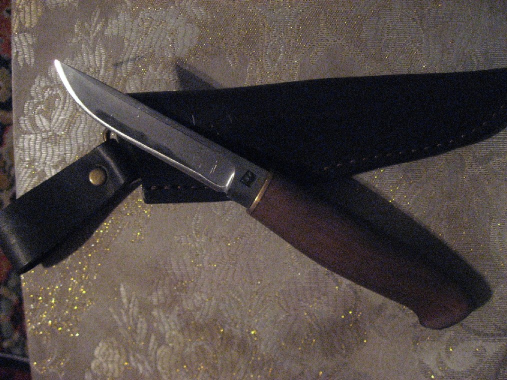 Выбрал я себе вариант из инструментальной стали. Ножны изготовлены не Вилкиным и не Вегерой, а Поляковым. на ножнах стоит его логотип. но все эти фамилии мне ничего не говорят. поэтому я не расстроился.