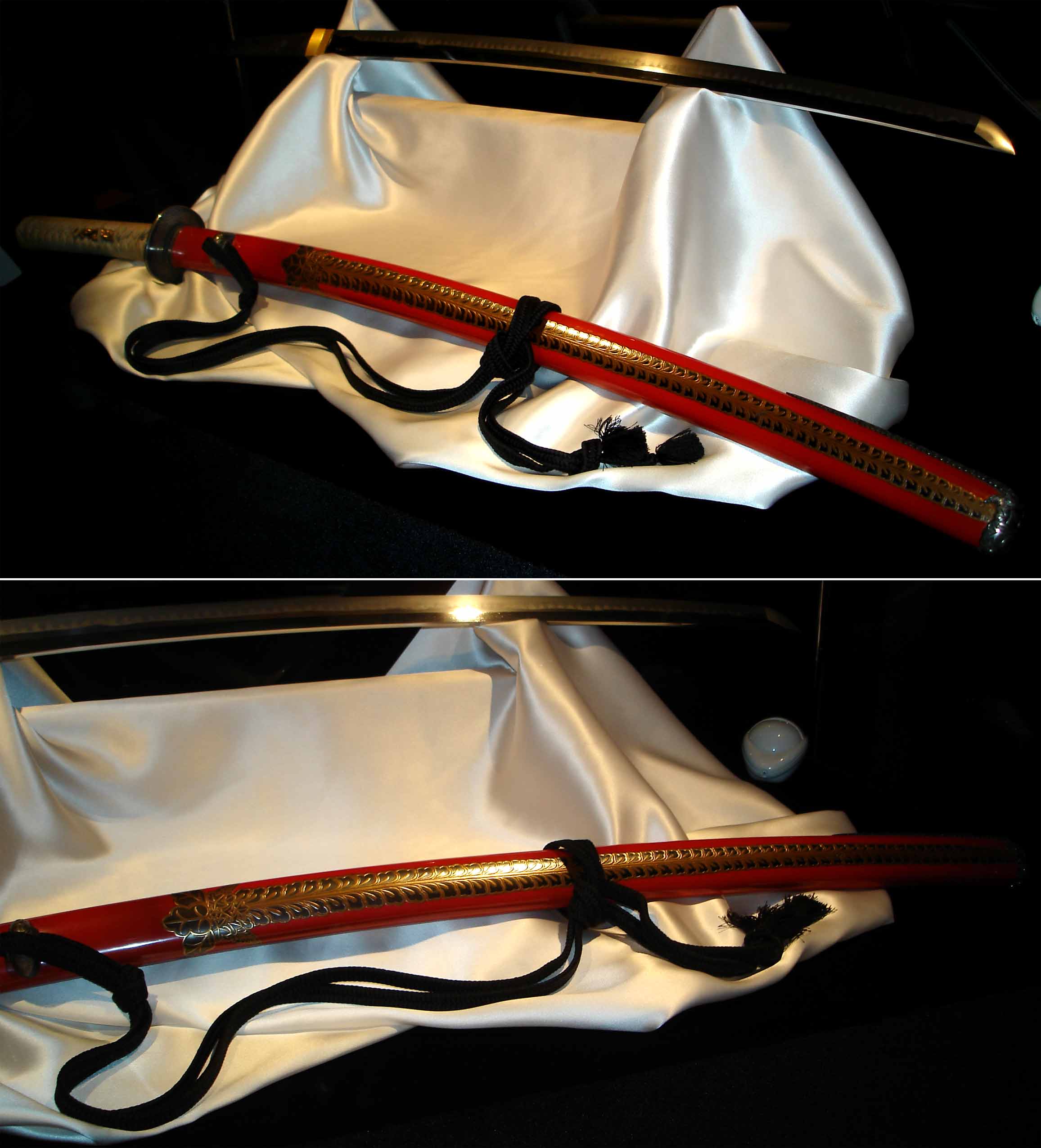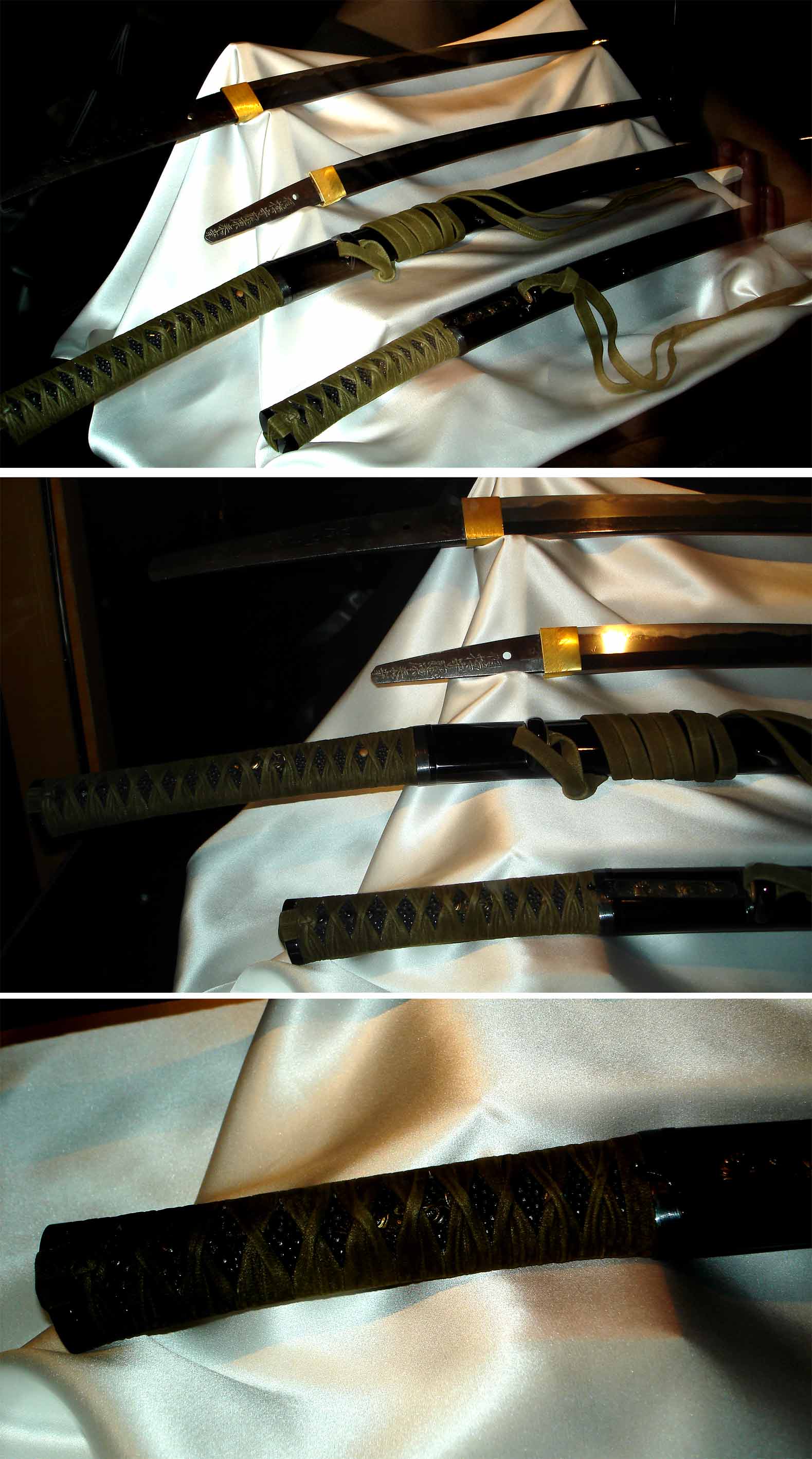 - ...На этом мече вы видите очень богатую оправу. Иметь такой меч мог себе позволить только очень богатый самурай! А его подчиненный были вынуждены пользоваться секонд хэндом...